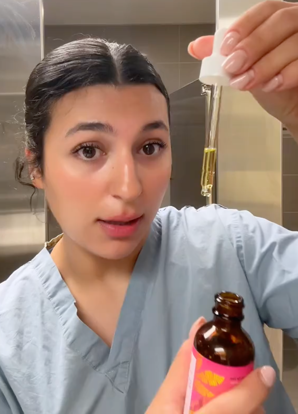 2️⃣ Then apply a few drops of the oil — it absorbs and targets the roots.
