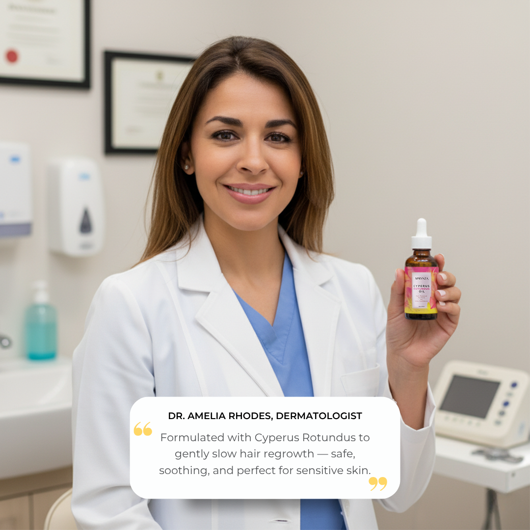 Cyperus Rotundus Oil — helps reduce hair regrowth.