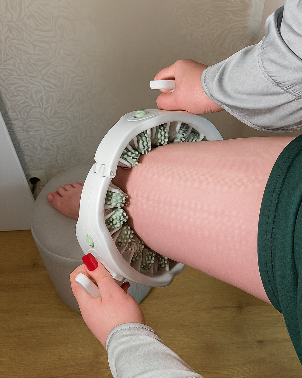 Sprynza™ Anti-Cellulite Roller uses 360° deep massage to improve skin appearance, boost circulation, and give your legs a lighter, firmer feel you’ll notice in weeks.